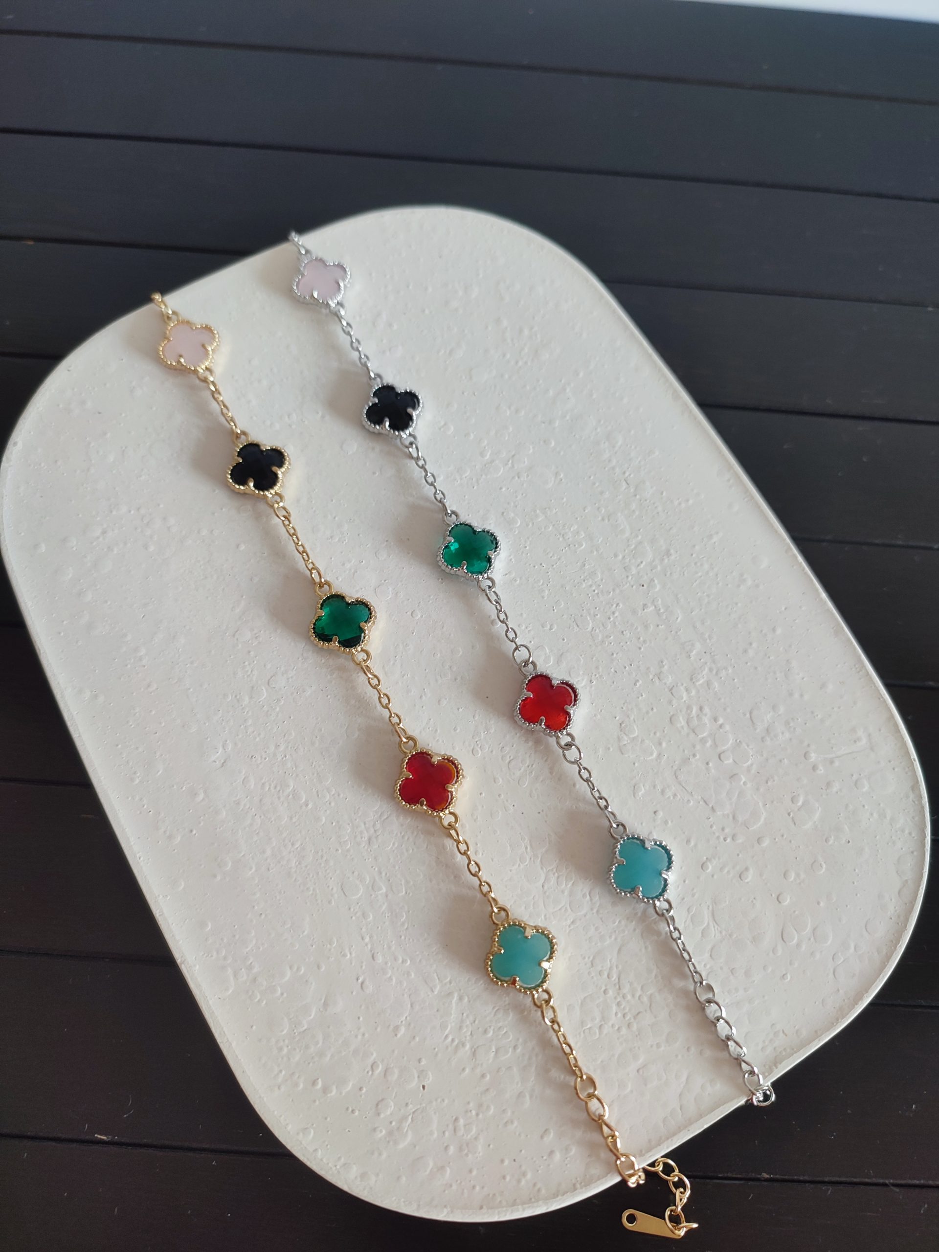 Renkli Taşlı Yonca Bileklik adet